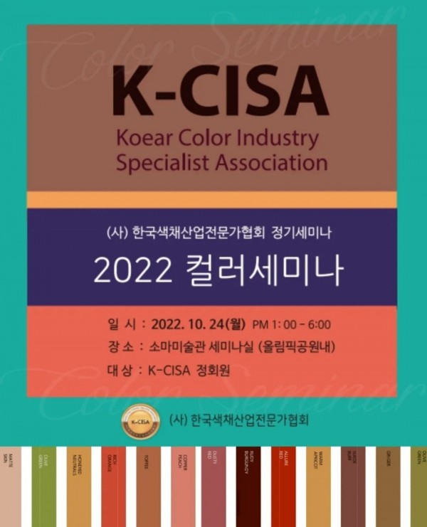 K-CISA 2022 컬러세미나 페이지 정보 작성자 최고관리자 작성일22-11-10 21:37 조회4,045회 댓글0건 본문 코로나 시기를 잘 보내고멋지게 컬러세미나를 재개했습니다~~ 사)한국색채산업전문가협회에서 매년 상반기, 하반기 컬러세미나를 개최해 왔지만 코로나로 인해 3년만에 하반기 세미나로 다시 시작하게 됐답니다^^ 늘 세미나 준비도 하시고 강의를 위해 애쓰시는 신향선@cci_pcs 협회장님 고생하셨습니다 이전글 다음글 목록
