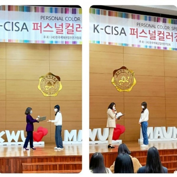 K-CISA 퍼스널컬러전문가 2급 자격검정시험 - 광주여대 페이지 정보 작성자 최고관리자 작성일21-11-14 22:18 조회4,266회 댓글0건 본문 1.일 시 : 2021.11.122.자격명 : 퍼스널컬러전문가2급3.대 상 : 광주여자대학교 항공서비스학과4.교 육 : 김문경교수(K-CISA인증강사)5.주 관 : K-CISA자격검정워원회6.시험관리감독위원 : 박규림, 신수범, 민자영7.주최 : (사)한국색채산업전문가협회 www.k-cisa.or.kr 이전글 다음글 목록