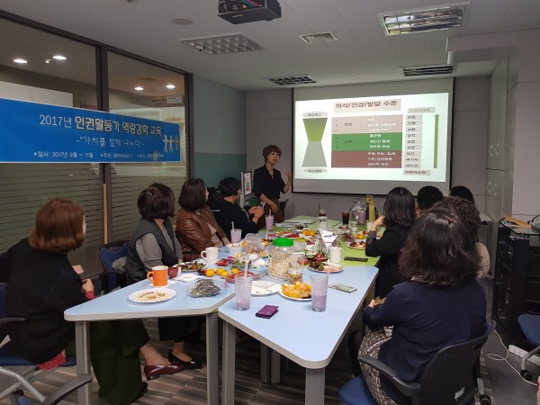 인권활동가 역량강화 교육 - 푸드아트테라피 & 컬러테라피 페이지 정보 작성자 최고관리자 작성일17-10-28 18:27 조회5,425회 댓글0건 본문 일시 : 2017. 10. 25장소 : 청소년 수련관대상 : 페미바로보기 회원내용 : 내면의 자아와 소통하며 이해하기진행 : 컬러컨설턴트 김경아, 컬러컨설턴트 박규림 이전글 다음글 목록